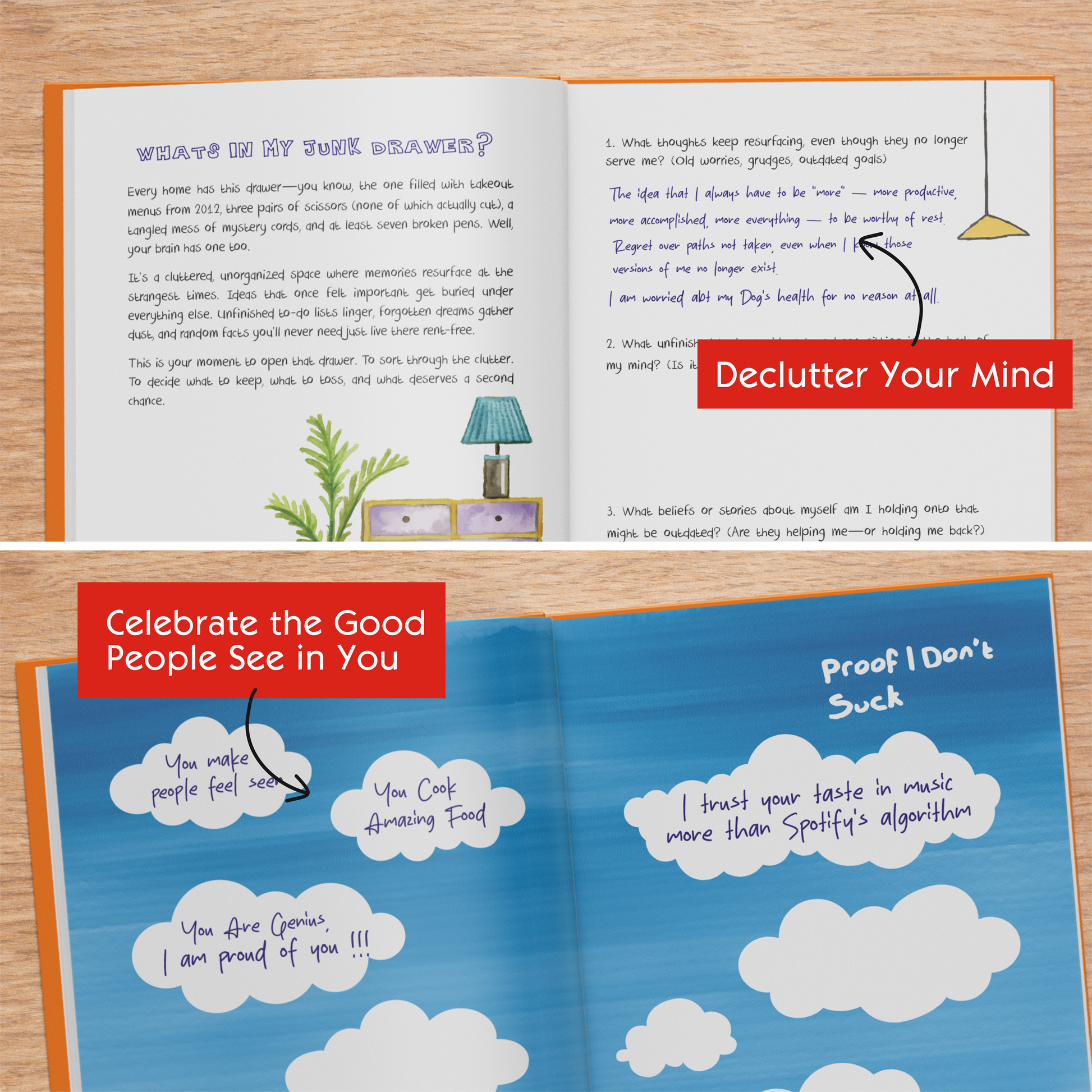 It’s the journal where your brutally honest best friend grabs you by the soul and says, “Alright babe — let’s unpack your entire brain.”