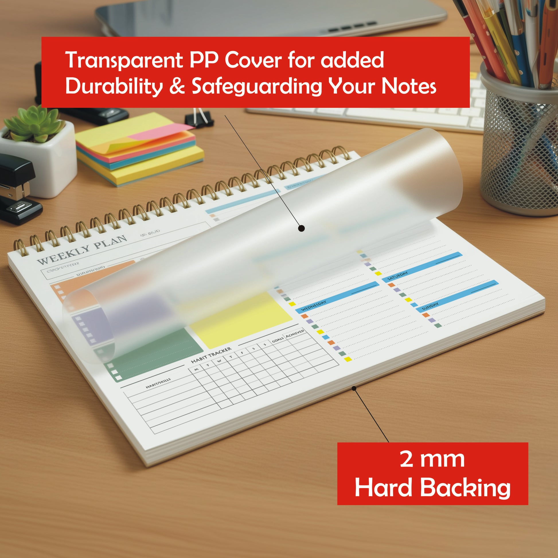- DURABLE TRANSPARENT PP COVER - Protects your notes from spills, bends, and everyday wear—because even your notes deserve VIP treatment.