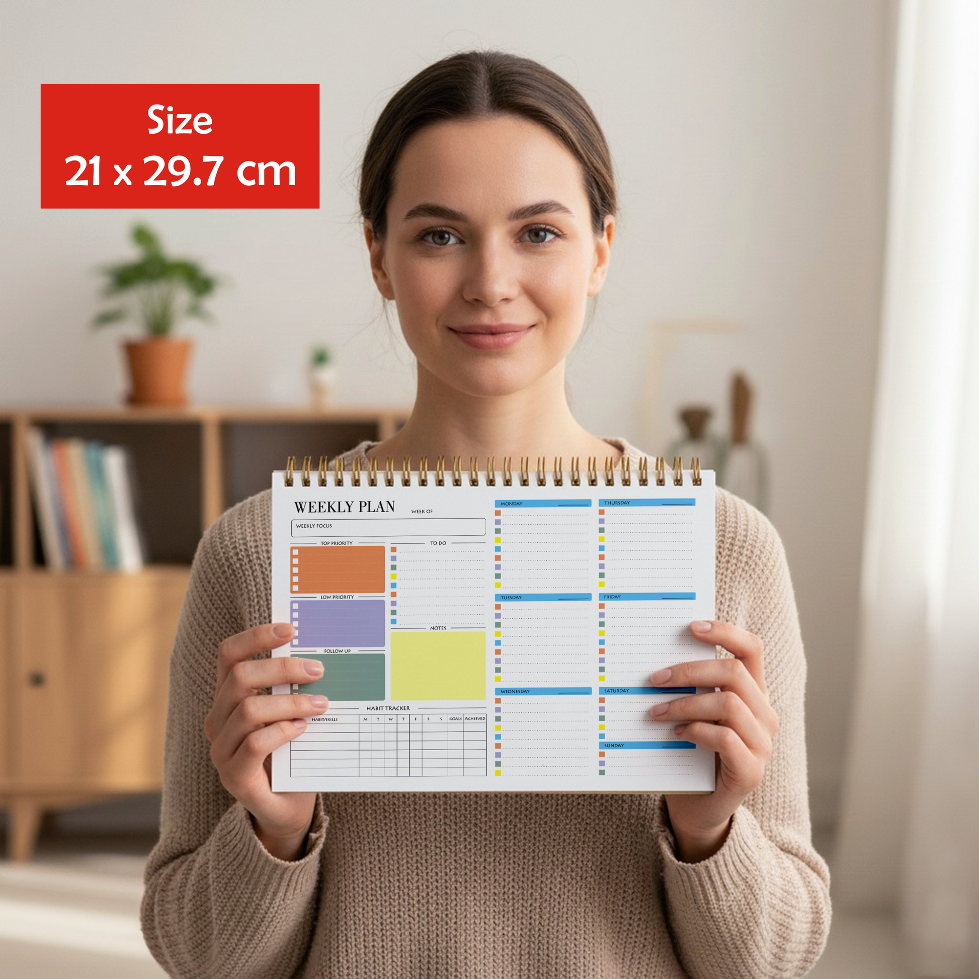 - PLAN WITHOUT PANIC - Each week gets its own A4 sheet with space for focus, top priorities, to-dos, follow-ups, and notes—no more lost sticky notes or scribbles in the margins.